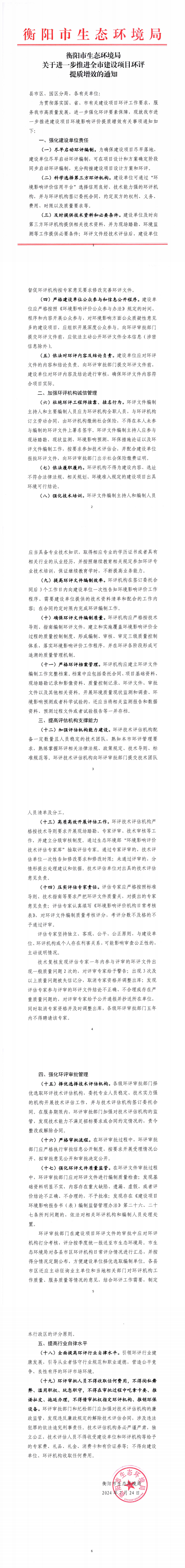衡陽市生態(tài)環(huán)境局關于進一步推進全市建設項目環(huán)評提質(zhì)增效的通知