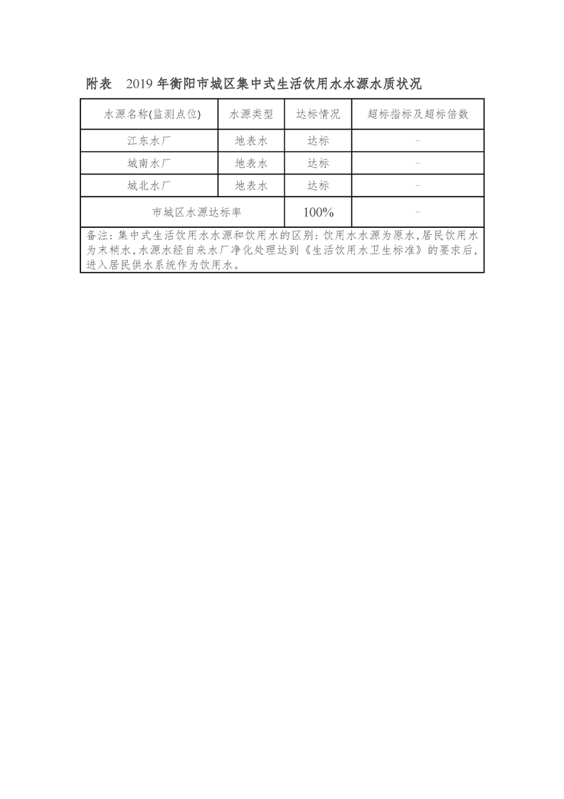 衡陽(yáng)市城區(qū)集中式生活飲用水水源水質(zhì)狀況報(bào)告(2019年)